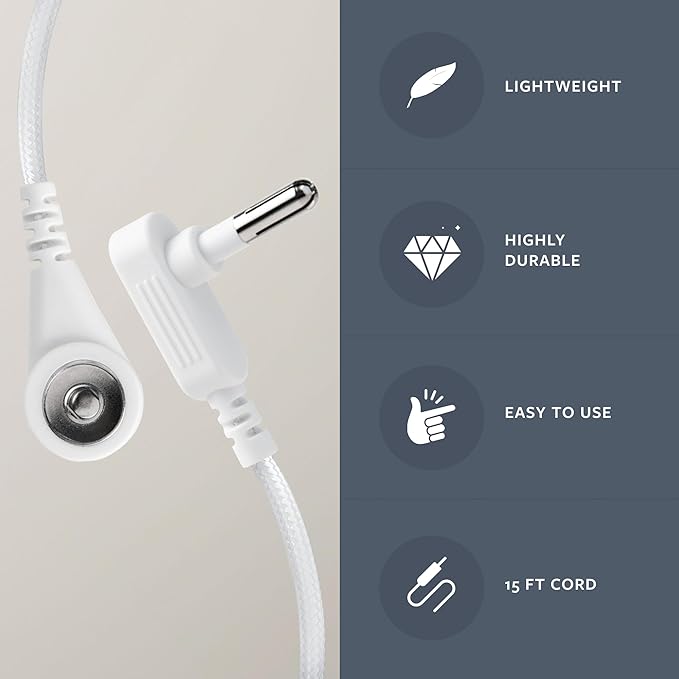 The GroundLuxe Grounding Cord provides you with a generous 15-foot reach and universal button connector for seamless compatibility with most grounding products. Built to last, this cord boasts sturdy construction and a durable cable to maintain strong conductivity for years to come. Experience peace of mind knowing that every unit has been individually tested for conductivity, ensuring optimal grounding for your well-being.